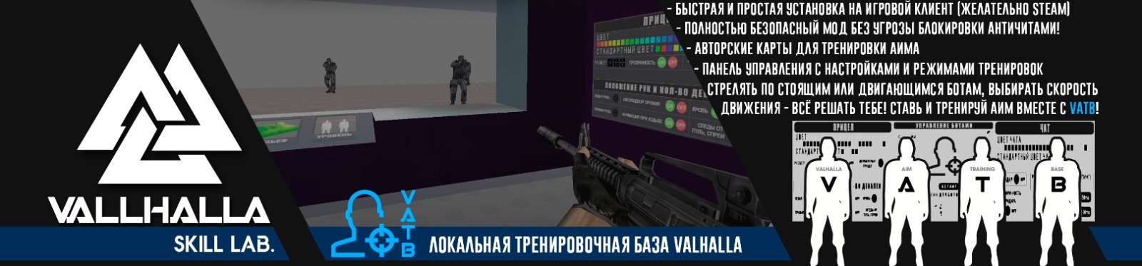 Valhalla Aim Training Base (VATB) — это не просто карта, а полноценный тренировочный мод с продвинутыми сценариями, ботами и системой тренировок. Он превращает обычную тренировку в полноценный aim-тренажёр, приближенный к реальным игровым ситуациям.